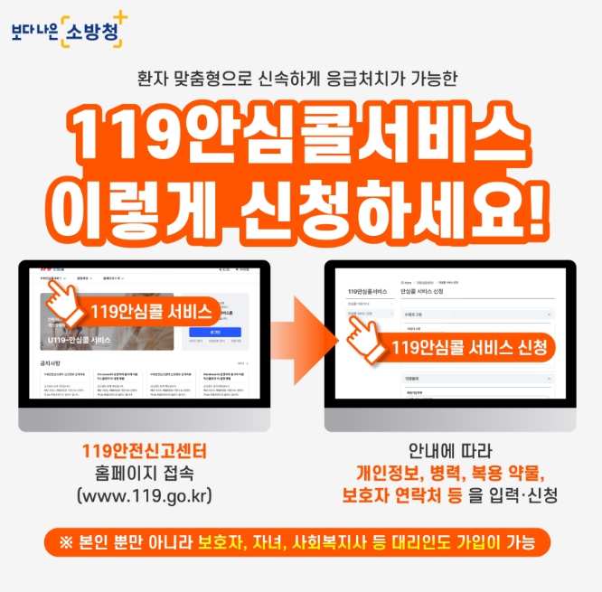 오늘, 지금 바로 119안심콜 서비스를 신청하고, 가족의 안전을 지킬 수 있는 첫걸음을 내디뎌 보세요.
