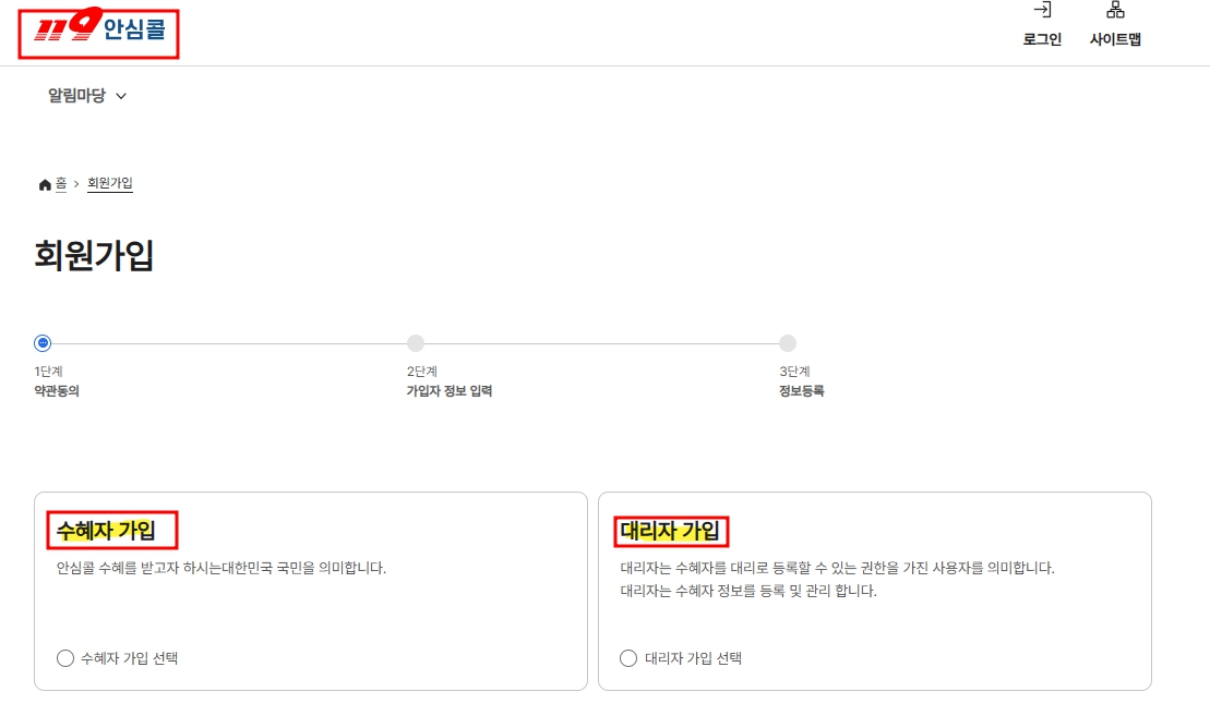 119안심콜 홈페이지 신청