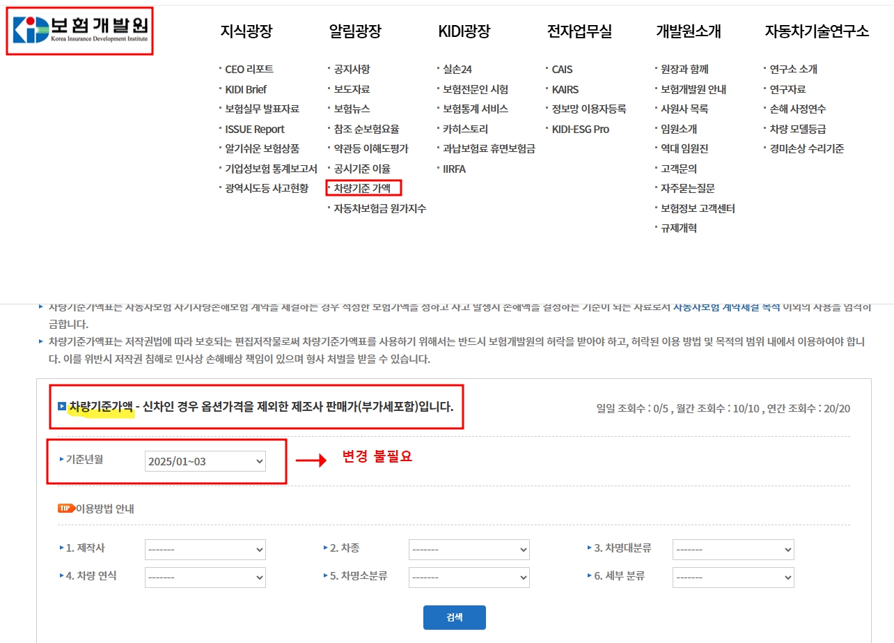 보험개발원 차량가액 조회 방법